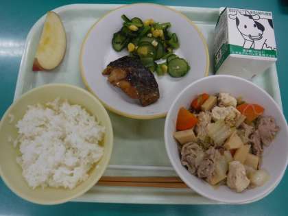 今日の給食 公開日 2022/12/02 更新日 2022/12/02 本日の給食 今日の給食の献立は、 ごはん 牛乳 あじのみりん焼き コーンあえ 豚肉と野菜の甘辛に りんご でした。 今が旬のりんごは、食感がよく、甘酸っぱくてとてもジューシーでした。 今日もおいしくいただきました。 来週の給食もお楽しみに。