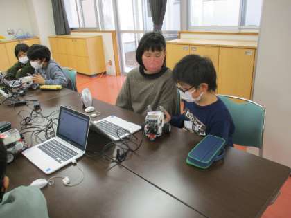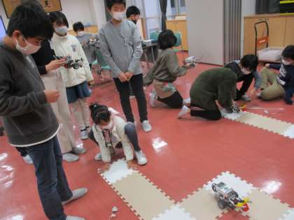 コースを陸の孤島に見立て、ロボットで荷物を届けるためのプログラムを考えました。コース上をどのように走らせればよいかペアの友達と相談し、プログラムを組みました。思い通りにロボットが動かず苦戦することもありましたが、試行錯誤して何とかミッションを達成させようと奮起していました。講師の先生からは、たくさん失敗してそこから学ぶことの大切さを教えていただきました。明日も楽しみにしています。