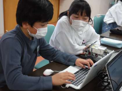 子供たちは、昨年学んだことを生かしながら、プログラムを作成し、ロボットを動かしていました。