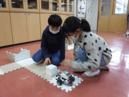一つ一つのプログラムを丁寧に作ることにより、実際にそのプログラムに対応した動きになることがとてもうれしい様子でした。うまくいかない動きに対して、何度も作り直そうとする粘り強い姿も見られました。