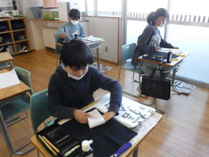 12月9日(金)6年生 強い「信念」をもって 公開日 2022/12/09 更新日 2022/12/09 メール用カテゴリ 書写の時間に、「信念」の文字を練習しました。 へんとつくりの関係を考えて、点画の位置や形に気を付けて書きました。