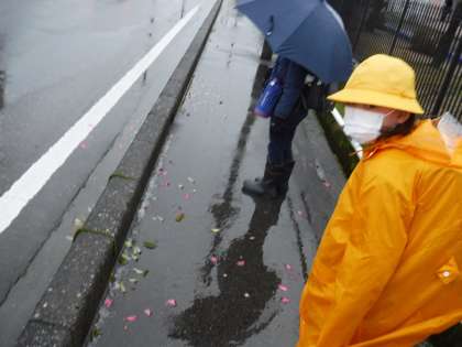 「おはようございます」と、雨風の中、挨拶の声が聞こえてきました。