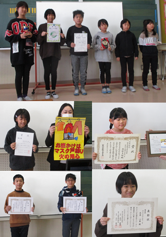 また、「ジュニアビーチボール競技」「交通安全スローガン」「富山市防火ポスター」「思考大会」「ごはん・お米と私作文図画コンクール」で力を発揮し、その力を認められた老田っ子たちの受賞披露も行いました。
