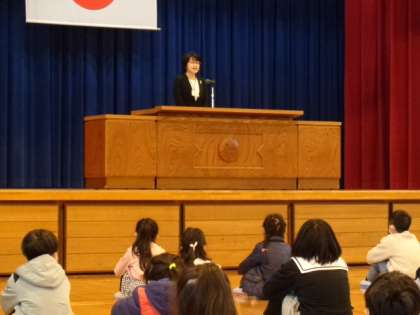 今日は久しぶりに全校児童が体育館に集まり、始業式を行いました。