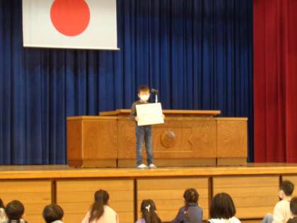 その後、受賞伝達式があり、作文で入賞した1年生が表彰されました。
