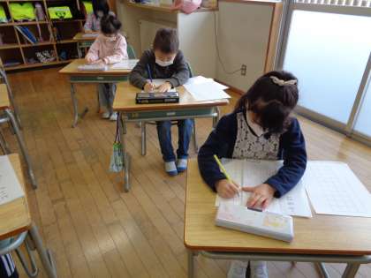 初めての校内書き初め大会では、緊張感のある雰囲気の中、これまでの練習を思い出して丁寧な字を書くことができました。