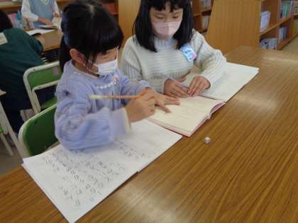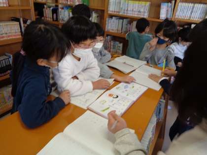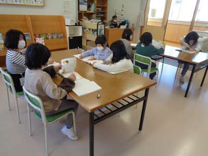 国語の時間に、図書室で詩を読みました。詩集を読んだり、友達と話したりしながら、自分の1番お気に入りの詩を見つけました。