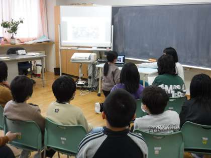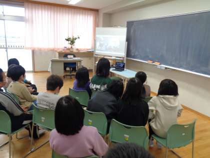 寒江小学校の4年生とMeetを使って、交流会をしました。総合的な学習の時間に学んでいることを互いに発表しました。発表の時は緊張していましたが、発表後の交流では寒江小学校ではどんな遊びが流行っているのか質問したり、自分たちのことを答えたりして、笑顔で楽しむことができました。