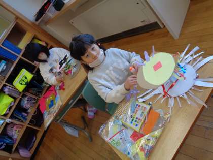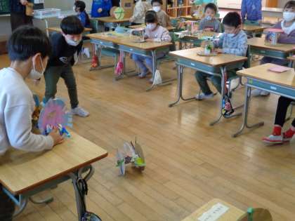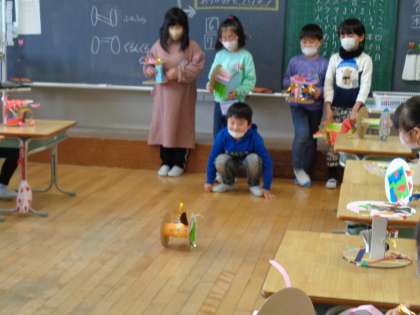 図画工作科「かみざらコロコロ」で作った作品紹介をしました。