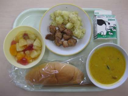 学校給食週間3日目の今日は、『シンデレラ』のお話からのメニューでした。