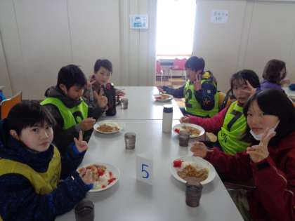 昼食は、カレーライスでした。あっという間に食べ終わり、午後の部に向けて体を休めました。