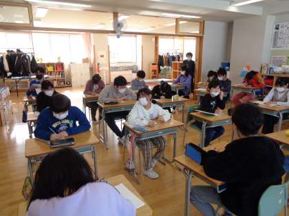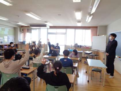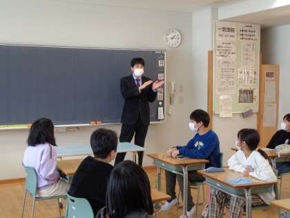 呉羽中学校から数学の先生が来校し、授業をしてくださいました。授業では、算数と数学の違いについての話や素因数分解等を学習しました。子供たちにとって興味深い内容だったようで、新鮮な気持ちで取り組み、積極的に発言する姿が見られました。