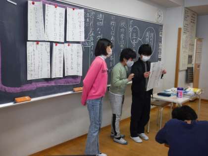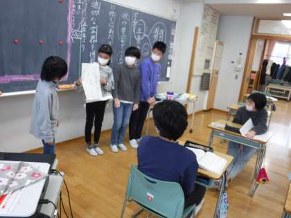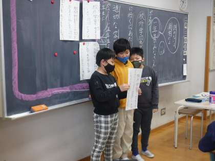 2月3日(金)5年生 国語科「1年生さんに伝わるポスター」発表です! 公開日 2023/02/03 更新日 2023/02/03 メール用カテゴリ グループごとに考えた1年生さんへのポスターの文章を発表しました。 発表後は、全グループのポスターの文章を1年生さんに読んでもらいます。 さあ、伝わるポスターは、どれでしょう。 5年生、渾身の力を発揮して考えました! 1年生のみなさん、見てくださいね。