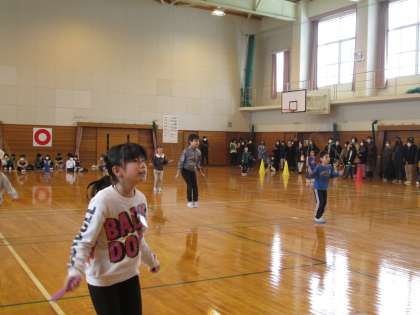 なわとび大会を行いました。今日は学習参観日。家族の応援が力となり、いつも以上に張り切る子供たちの姿が見られました。なわとび大会では2分間、自分が決めた技で跳び続けます。時間いっぱいまで、少しでも記録を伸ばそうと一生懸命跳んでいる姿がとてもすてきでした。また、目標を達成した喜びを伝えている子供もいました。