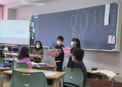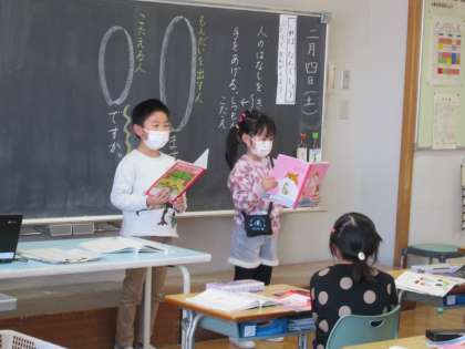2月4日(土) 1年生 学習参観 公開日 2023/02/04 更新日 2023/02/04 1年生 今日の学習参観では、国語科「これは、なんでしょう」で作った問題を出し合いました。同じ答えになるものでもヒントの出し方で、答える側が首をひねる問題になっていました。「難しい方が、おもしろい!」という声が上がり、考えることを楽しむことができた時間になりました。 本日はご多用の中、今年度最後の学習参観に来校いただき、ありがとうございました。