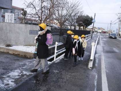 大変寒い中、地域の方々、保護者の皆さんが、登校を見守ってくださいました。