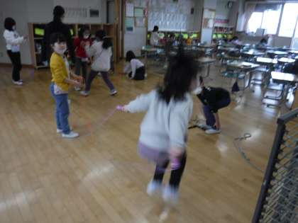 2月15日 縄跳び大好き! 公開日 2023/02/15 更新日 2023/02/15 メール用カテゴリ 休み時間になりました。子供たちは、ワークスペースに出て元気に縄跳びをしています。 「この技ができるよになったよ、見て見て」 「数えて!100回いくよ」 と、たくさん声をかけてくれます。 子供たちは生き生きと休み時間を過ごしています。