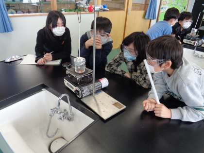 2月17日(金) 4年生 理科の実験 公開日 2023/02/18 更新日 2023/02/18 4年生 理科「水のすがたと温度」の学習では、水を熱したときの水の温度や様子を調べました。子供たちはグループで協力して実験を進めていました。