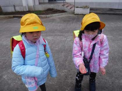「氷のワッペン、それぞれ違ってきれい」と命名した子供たちでした。