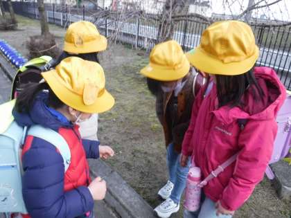 3月1日(水)植物も春の準備をしています 公開日 2023/03/01 更新日 2023/03/01 メール用カテゴリ 登校した1年生の子供たちが、チューリップの球根を植えた鉢や桜を見たり、草むしりをしたりしています。 「桜のつぼみが膨らんできたよ」 「もふもふしているよ」 「チューリップの芽が伸びてきたよ」 子供たちは、のびのびと春みつけをしていました。 小学校の2回目の春が巡ってきましたね。