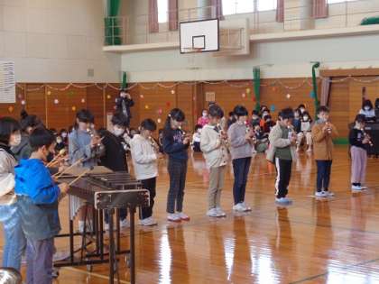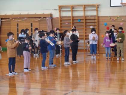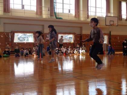6年生を祝う会では、歌と合奏のプレゼントをしました。6年生への感謝の気持ちや中学校へ行っても頑張って欲しいという気持ちが伝わるように一生懸命に取り組みました。また、6年生と二重跳び対決をして楽しみました。