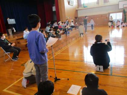 5年生が企画・運営の中心となって、卒業を祝う集会を行いました。5年生の子どもたちは、朝から会場の飾り付けを行ったり、進行の確認をしたりするなど、6年生にありがとうの気持ちを伝えようと精一杯準備しました。5年生の出し物として、「全校対決クイズどっちが勝つでショー」を行い、会を盛り上げました。老田っこが楽しそうに過ごす姿や6年生の嬉しそうな顔を見ることができ、達成感を感じている5年生でした。