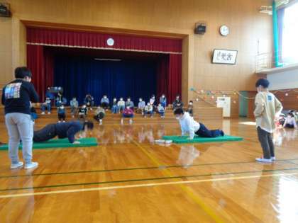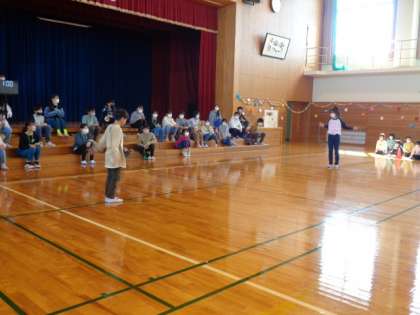 4年生は、都道府県クイズ、5年生はハヤブサ1分間サバイバル跳びで勝負しました。さすが6年生、とても賢くかっこよかったです。最後に、6年生と担任の先生とで勝負を行い、会場は大盛り上がりでした。
