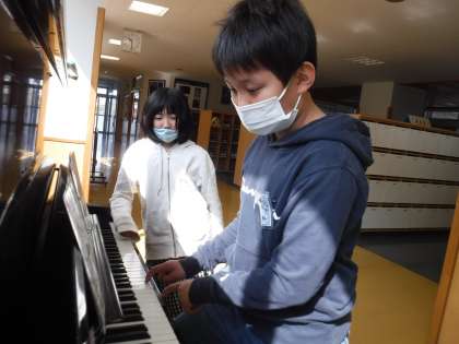 3月9日(木)日だまりの中で 公開日 2023/03/09 更新日 2023/03/09 メール用カテゴリ 児童玄関前に暖かな日が差し込み、5年生の図画工作科の作品がさらにすてきな光の贈り物を届けてくれました。 ここ「廊下ピアノ」でも、日々、ピアノに親しむ子供たちがいます。 今日は、挑戦している友達を励ましていた友達が、「弾けないんだよな」と言いながら、 挑戦をする場面が見られました。 すてきですね、今日、新たな自分史をつくった老田っ子です!