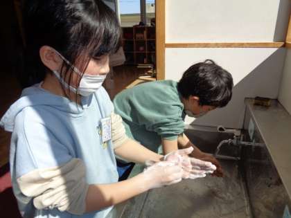 3月15日(水) 3年生 保健 公開日 2023/03/16 更新日 2023/03/16 3年生 保健「体の清けつ」では、感染症予防のために習慣化して行っている手洗いについて考えました。石けんの使用の有無で、手洗い後の汚れの残り方を比べる実験を通して、水のみの手洗いでは汚れを落とすには不十分だということを視覚的に確かめました。予想していた結果と違った子供たちからは驚きの声が聞かれました。体験を通して行動が変わりそうです。