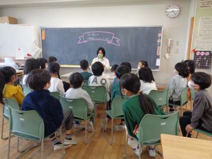 今年度最後の読み聞かせがありました。読み聞かせの後には、きつねの手遊びを教えていただきました。休み時間でも、口ずさんでいた子供達でした。1年間、楽しい朝の読み聞かせの時間を、ありがとうございました。