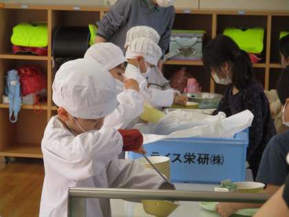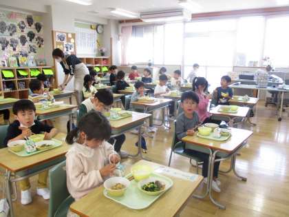 4月11日(水) 1年生 給食 公開日 2023/04/11 更新日 2023/04/11 1年生 今日から給食が始まりました。朝から「今日はみんなで給食食べられる?」と給食の時間を楽しみにしていた子供たちは素早く準備をしていました。