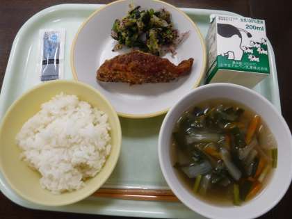 今日の給食 公開日 2023/04/13 更新日 2023/04/13 本日の給食 今日の給食の献立は、 ごはん 牛乳 鰺の竜田揚げ ゆかり和え 春雨スープ のり佃煮 でした。 鰺の竜田揚げは、表面がサクサクで中がふっくらやわらかく揚がっていてとてもおいしかったです。子供たちは、食感と香ばしさを味わっていました。 明日の給食もお楽しみに。