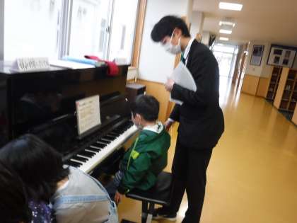 4月17日(月)いきいきタイムですてきな連弾♪ 公開日 2023/04/17 更新日 2023/04/17 メール用カテゴリ 1階の廊下ピアノでは、2年生の男の子が通りかかった先生と即興の連弾を楽しんでいました。