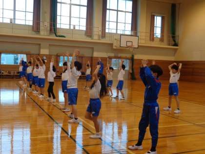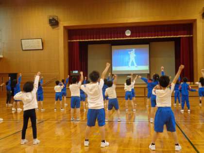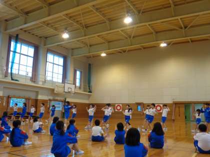 今日は、昨年度に振りを付けてもらった「新時代」の曲に合わせたダンスを踊りました。どの子も曲が始まると踊り始めました。運動会まで、振りをそろえたり場所移動を覚えたりして、全校ダンスを楽しく踊りたいと張り切っています。