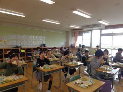 5年生 いただきます 公開日 2023/04/19 更新日 2023/04/19 5年生 なごやかな雰囲気で楽しく給食をいただきました。たくさん食べて、6限目に行われた初めての委員会にも張り切って参加しました。