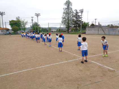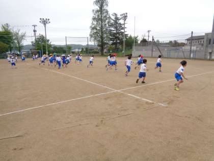 「ねことねずみゲーム」の様子です。音をよく聞いてスタートし、全力で走っていました。
