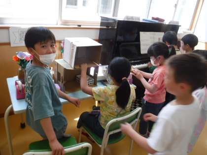 いきいきタイムに2年生の子供たちが放送室前に来ました。