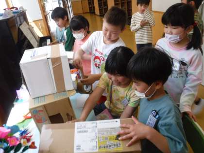 今日、登校中に大きな箱を抱えて歩いてきた男の子がいました。