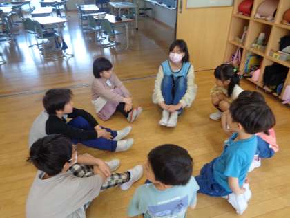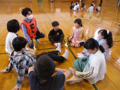児童会発足式の後、団ごとに集まり、なかよし班の顔合わせを行いました。