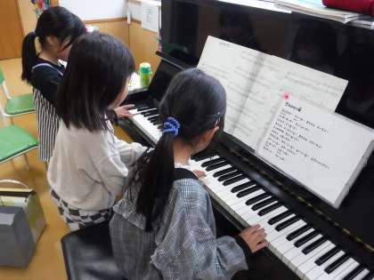 友達に教わりながら、ピアノを弾いて連弾した2年生の子供たち。