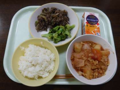 先進7カ国(G7)にちなんだ「サミット給食」の2回目の今日は、アメリカ合衆国の献立でした。「アメリカンビーフソテー」は、牛肉と野菜の旨みと甘みが合わさり、濃厚な味わいでご飯が進みました。
