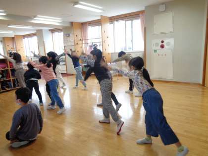 誰ともなくワークスペースでダンスを踊り始めました。踊ることが大好きな4年生です。