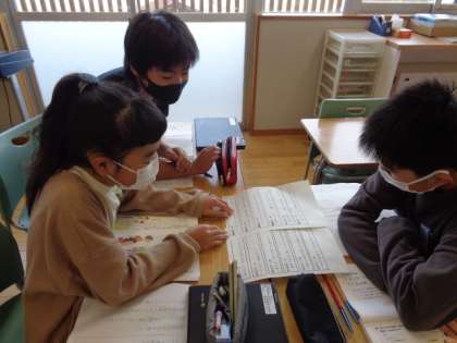 学習参観では、国語科「つないで、つないで、一つのお話」を行いました。