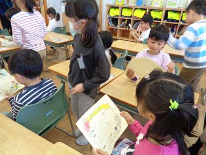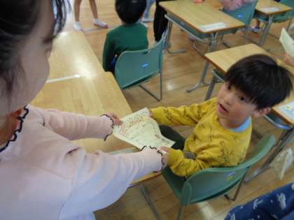 明日の「入学おめでとう集会」の招待状を2年生さんが作ってくれました。子供達は「ありがとう」「楽しみ」「字が綺麗だな」と嬉しそうに招待状を見ていました。