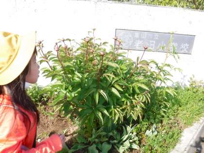 新緑に包まれた二宮金次郎さんの傍で、6年生のお友達が一緒に本を開くジェスチャーをしてくれました。さすが読書大好き老田っ子!