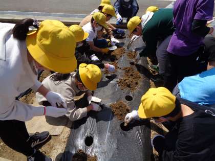 4月28日(金)6年 理科 公開日 2023/04/28 更新日 2023/04/28 6年生 理科の学習で使用するジャガイモを育てるため、種芋を植えました。 無事に収穫できるように、これから世話をしていきます。