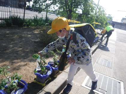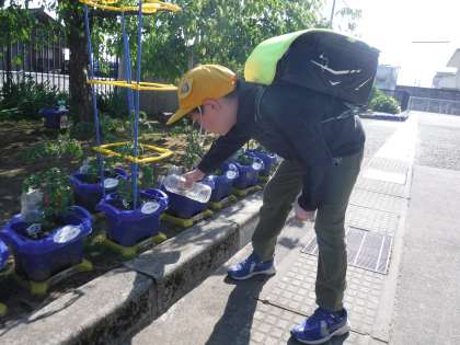 「みんなのも水をあげるよ」と言って、友達のミニトマトにも水をやる姿が見られました。