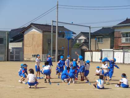 運動会に向けて、玉入れの練習を1、2、3年生合同で行いました。外での練習は初めてでしたが、流れを覚えて、すばやく行動していました。玉もたくさん入っていました。