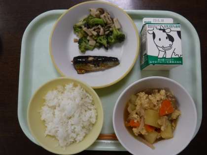 「卵とじ」の中に使われている食材の「油麩」は、何からできているでしょう。という、クイズが流れました。食材のなかには、意外な原料からできているものもあります。子供たちは、麩が小麦粉から作られていることに驚いていました。