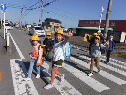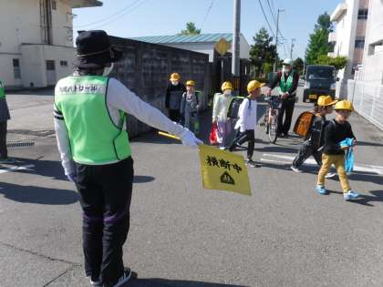 5月12日(金)ハンドサインで渡る意志を伝えます 公開日 2023/05/12 更新日 2023/05/12 メール用カテゴリ 春の全国交通安全運動2日目の朝の様子です。 横断歩道を渡るときに、ハンドサインを表示しています。 地域の方々の見守りをいただきながら登下校しています。 今日もありがとうございます。